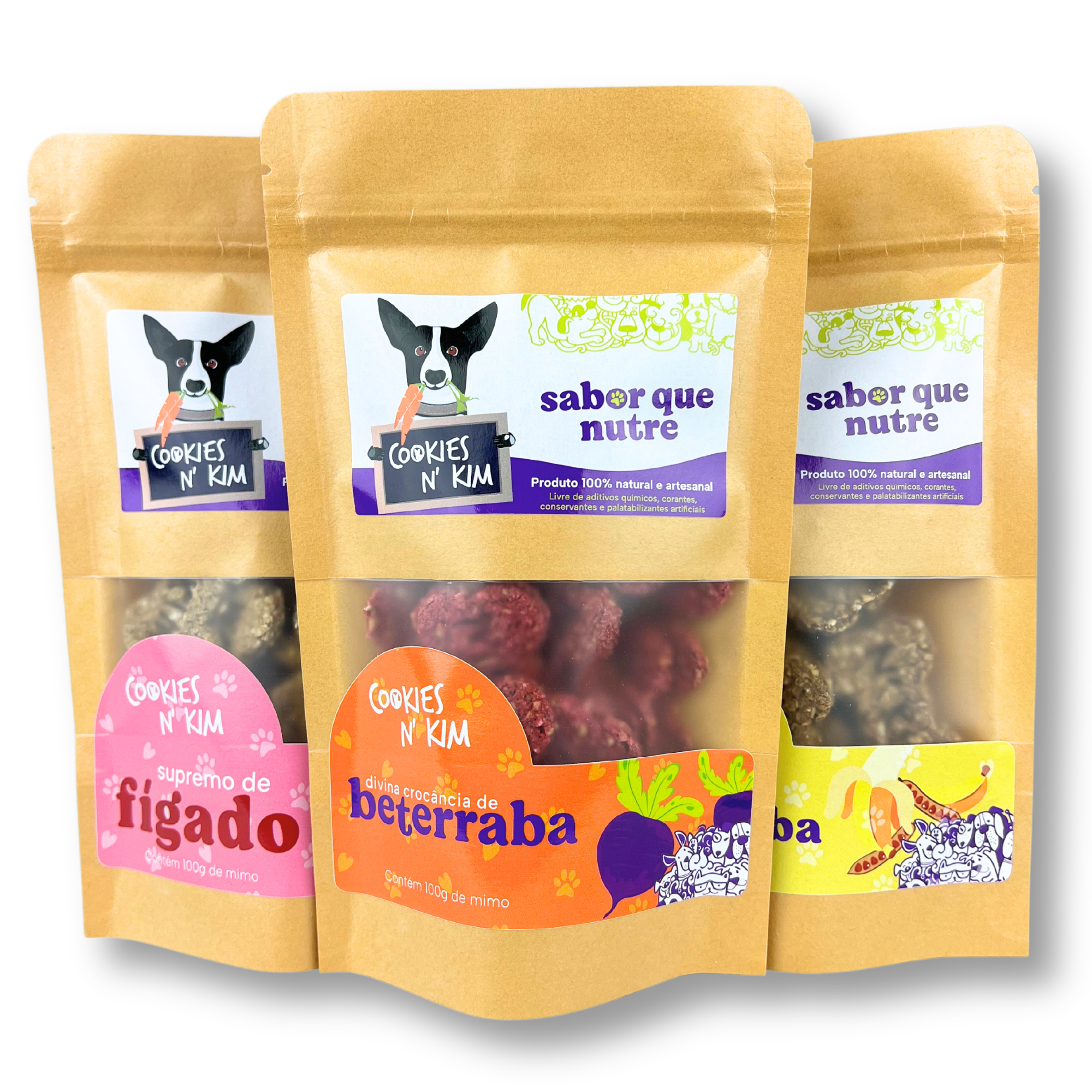 Cada pacote de 100g é produzido com rigoroso controle de qualidade e tem validade de 5 meses. Com o Kit Cookies N' Kim, você proporciona ao seu pet uma experiência completa, com todo o frescor e sabor que ele merece!