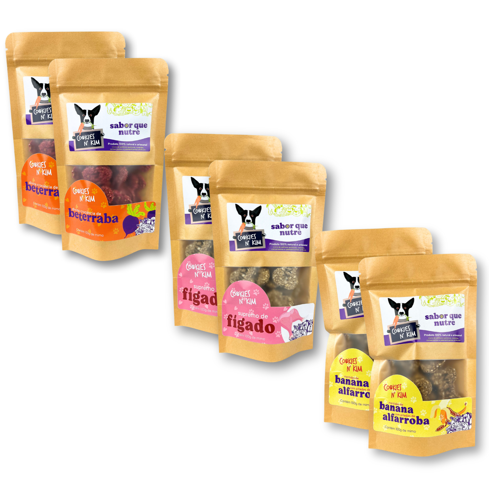 Cada pacote de 100g é produzido com rigoroso controle de qualidade e tem validade de 5 meses. Com o Kit Cookies N' Kim, você proporciona ao seu pet uma experiência completa, com todo o frescor e sabor que ele merece!